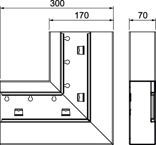 Altezza 70 mm Area ad angolo min. 90 mm Colore bianco; RAL 9010 Deviazione di direzione verticale in salita Dimensionee 70x170x300 Foro di montaggio nel pavimento sì Giunto canale no Grado di protezione IP30 Grado di protezione IK-Code IK10 Graffa ferma cavo no Impronta CO2 (GWP) dalla culla al cancello 7,0947 kg CO2e / 1 Pezzo Larghezza 170 mm Larghezza della parte superiore 76,5 mm Lughezza. 300 mm Materiale Acciaio Numero delle parti superiori 1 Pellicola protettiva sì per altezza canale 70 mm per larghezza canale 170 mm Priva di alogeni sì Range di temperatura di esercizio max 60 °C Range di temperatura di esercizio min. -25 °C Simmetrico no Tipo di montaggio delle parti superiori collocato internamente Trattamento antibatterico no Versione Parte inferiore - Tutti i tipi