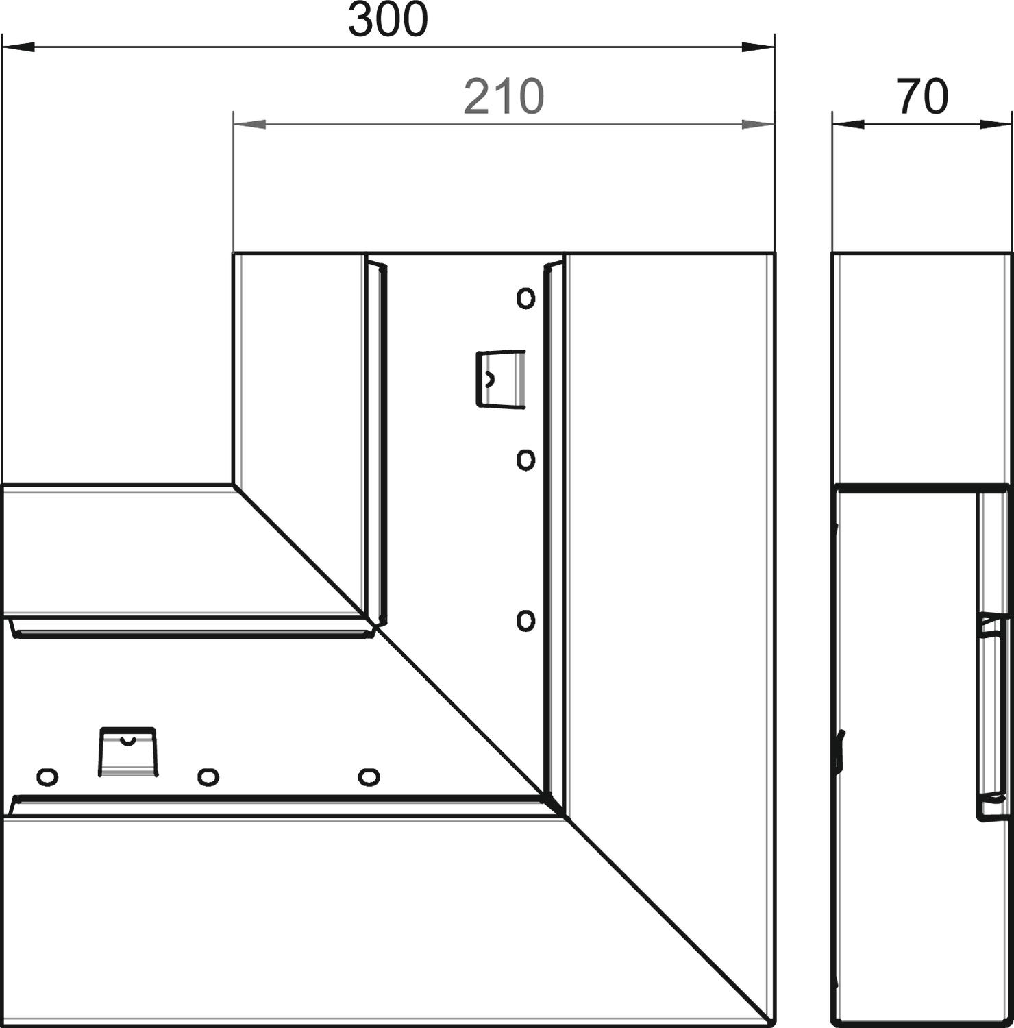 Altezza 70 mm Area ad angolo min. 90 mm Colore bianco; RAL 9010 Deviazione di direzione verticale in salita Dimensionee 70x210x300 Foro di montaggio nel pavimento sì Giunto canale no Grado di protezione IP30 Grado di protezione IK-Code IK10 Graffa ferma cavo no Impronta CO2 (GWP) dalla culla al cancello 13,6087 kg CO2e / 1 Pezzo Larghezza 210 mm Larghezza della parte superiore 76,5 mm Lughezza. 300 mm Materiale Acciaio Numero delle parti superiori 1 Pellicola protettiva sì per altezza canale 70 mm per larghezza canale 210 mm Priva di alogeni sì Range di temperatura di esercizio max 60 °C Range di temperatura di esercizio min. -25 °C Simmetrico no Tipo di montaggio delle parti superiori collocato internamente Trattamento antibatterico no Versione Parte inferiore - Tutti i tipi