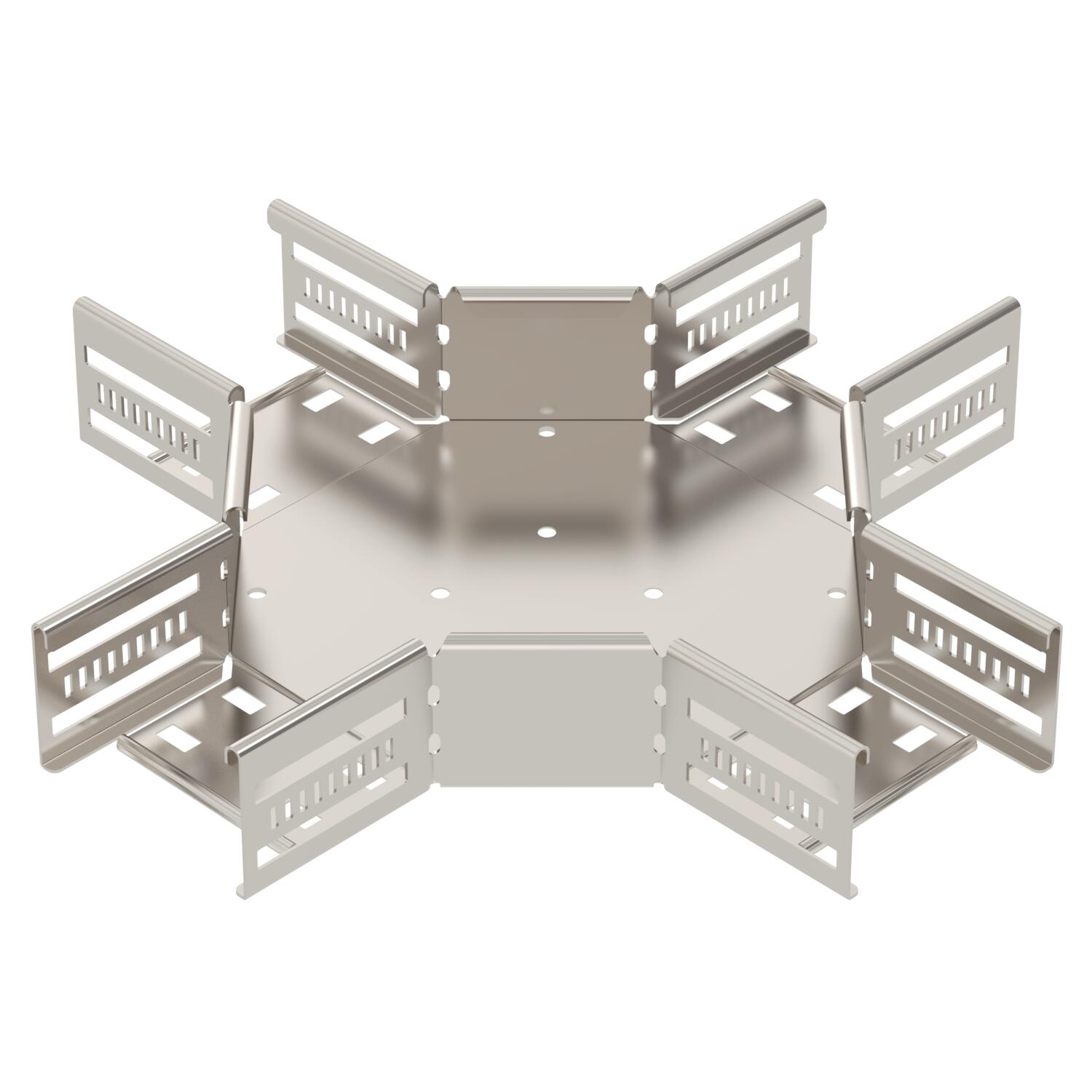 Descrizione del prodottoDerivazione a croce per realizzare una deviazione orizzontale, accessorio per passerelle portacavi a innesto e avvitabili con altezza bordo di 60 mm. Montaggio senza viti con morsetti doppi oppure connessione con viti a testa tonda FRS e dadi con rondelle M6. Utilizzabile in ambienti interni ed esterni. Il materiale di fissaggio deve essere ordinato separatamente.