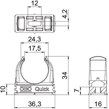 Descrizione del prodottoGaffetta da parete antifiamma per l'alloggiamento di tubi in acciaio corazzati metrici, tubi isolanti leggeri e pesanti e tubi per installazione elettrica Quick-Pipe. Possibilità di fissaggio universali su pareti e soffitti in ambienti interni e ambienti esterni protetti. Con foro lungo per l'allineamento laterale in caso di montaggio con viti per legno e tasselli a espansione. Montaggio tubi senza attrezzi. Possibilità di montaggio allineato anche con gaffette OBO Multi-Quick o proQuick. La dimensione M16 - M32 è avvitabile su filettatura M6. Distanza di fissaggio 50-60 cm, max. valori di estrazione F a temperatura ambiente di 20 °C, vedere tabella.