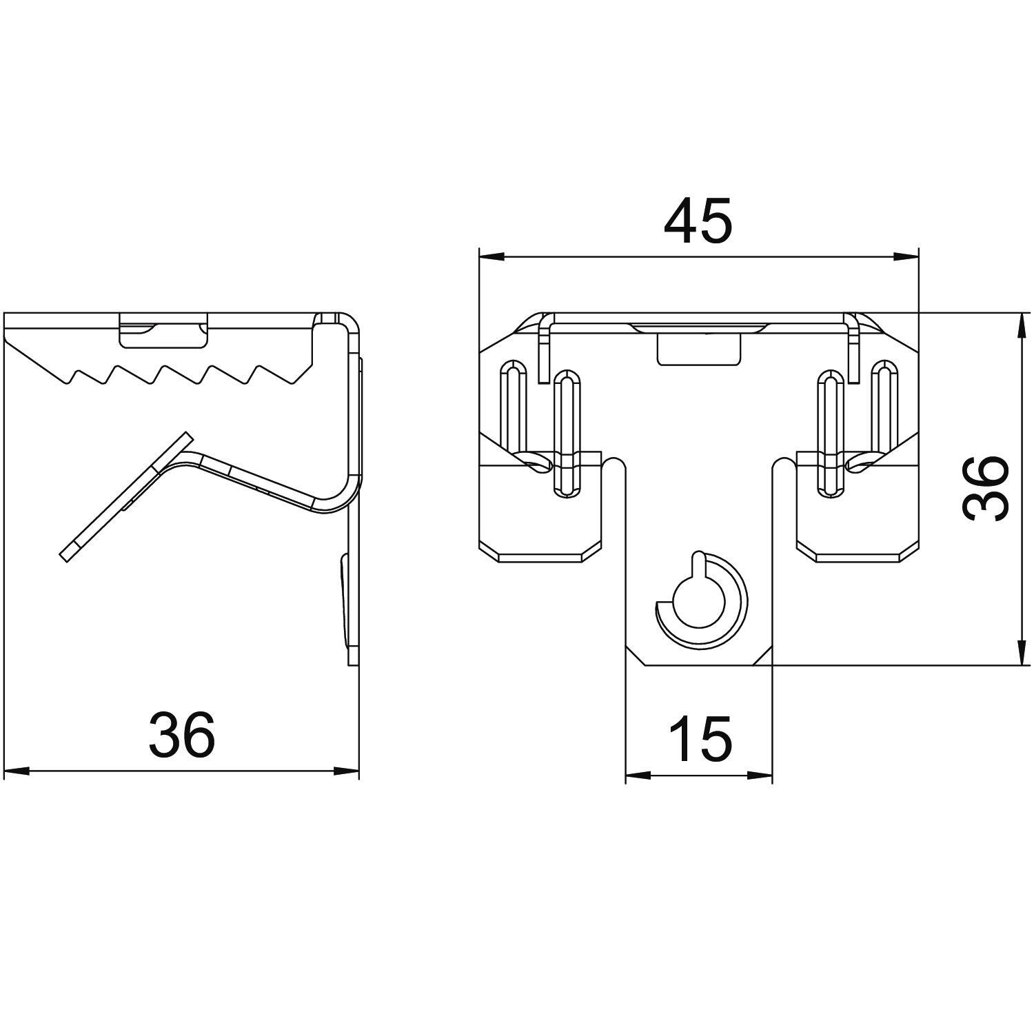 Altezza 36 mm Carico di rottura 0,45 kN Cerniera regolabile no Colore zinco Con cerniera no Dimensione L 36 mm Dimensionee 7-13mm Filettatura metrica 6 Larghezza 45 mm Lughezza. 36 mm Materiale Acciaio Spessore flangia F max 13 mm Spessore flangia F min. 7 mm Superficie Lamella di zinco Tipo di fissaggio Morsetti Tipo/componenti di collegamento Filettatura - Tutti i tipi