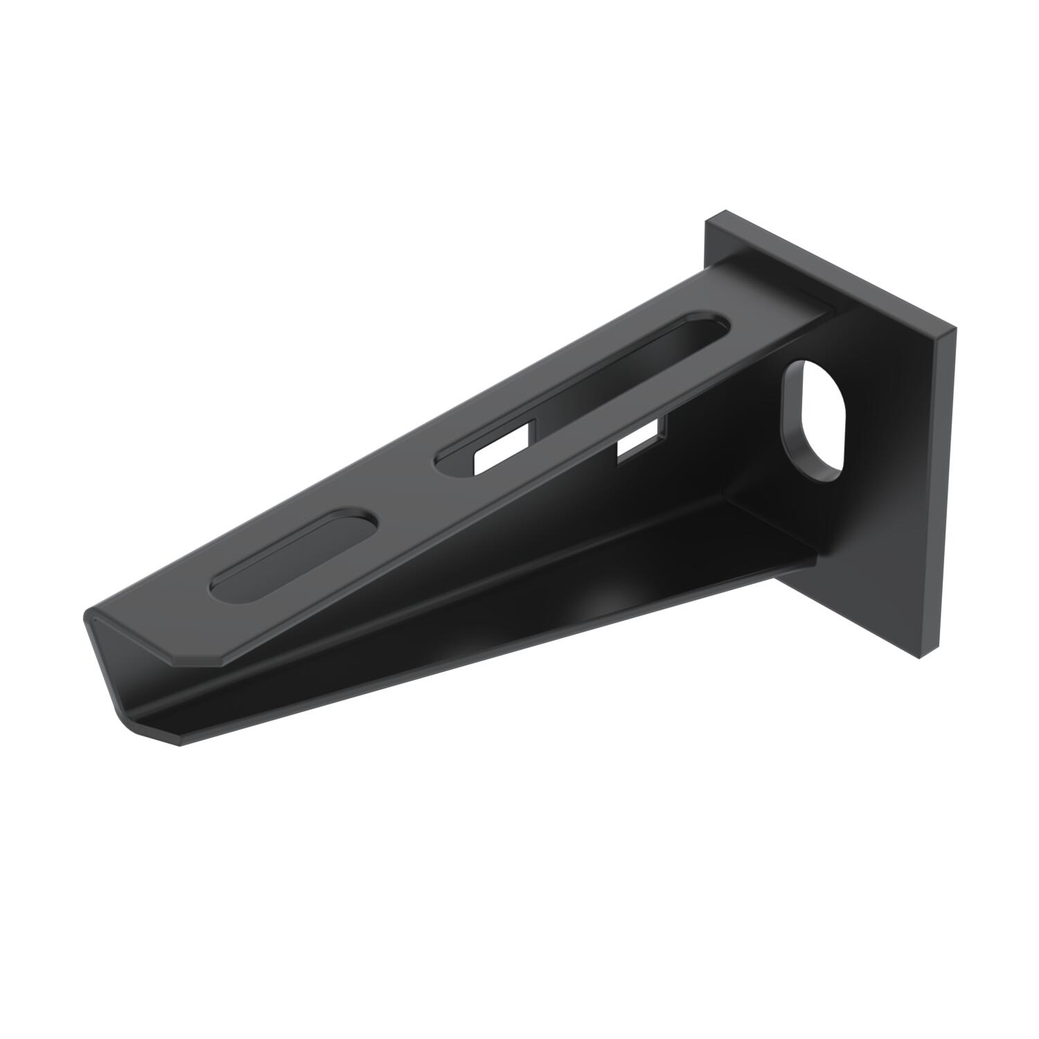 Descrizione del prodottoMensola a parete e a profilato leggera con supporto a soffitto saldato. Rivestimento nero.