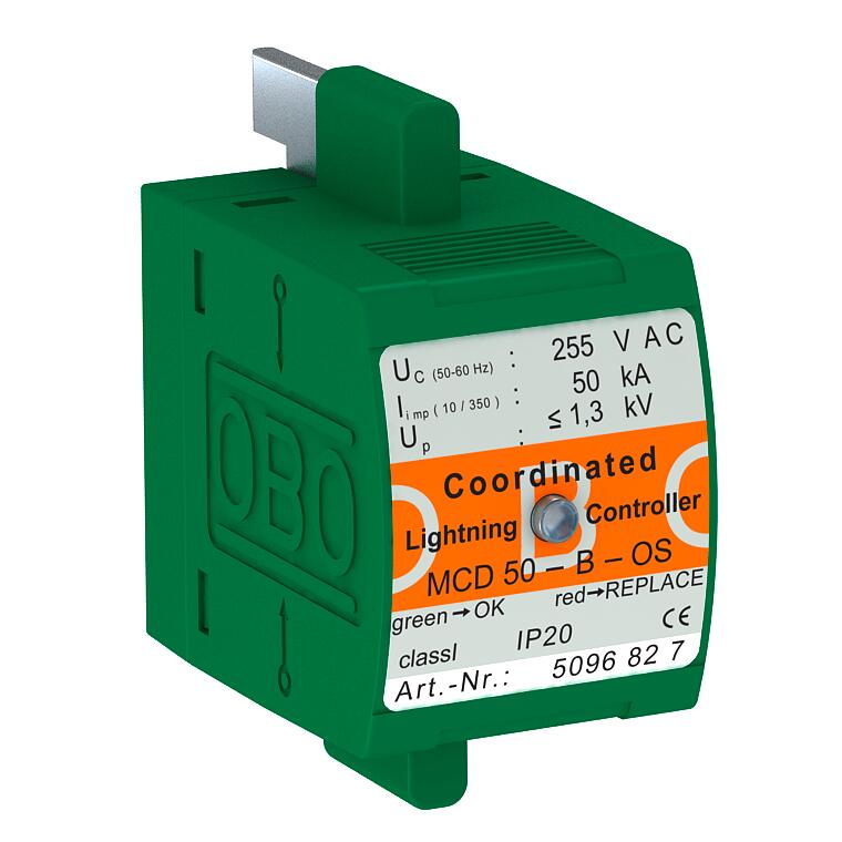 Descrizione del prodottoScaricatore combinato, limitatore di corrente da fulmini tipo 1+2 parte superiore con visualizzazione.