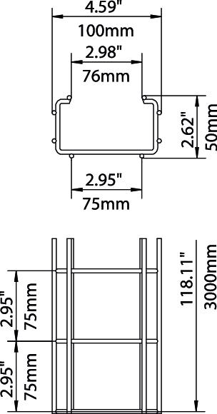 Descrizione del prodottoPasserella grigliata con forma a C composta da fili in acciaio saldati a punto, altezza del bordo 50 mm.