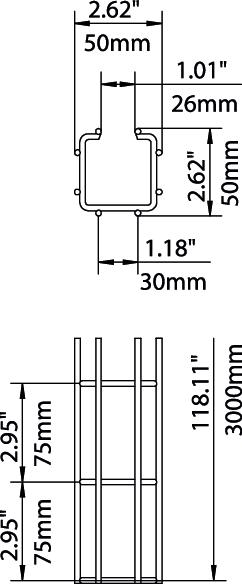 Descrizione del prodottoPasserella grigliata forma a C composta da fili di acciaio saldati a punto con bordo di altezza pari a 50 mm.