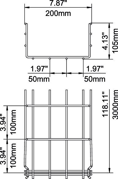Per la passerella grigliata non sono necessari ulteriori componenti di collegamento, vengono semplicemente inserite l'una nell'altra. La dimensione delle maglie è di 50 x 100 mm.