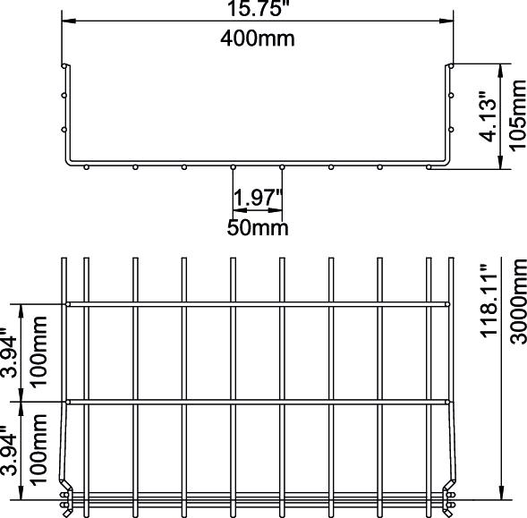 Per la passerella grigliata non sono necessari ulteriori componenti di collegamento, vengono semplicemente inserite l'una nell'altra. La dimensione delle maglie è di 50 x 100 mm.