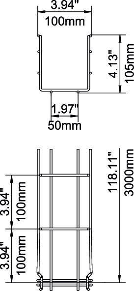 Per la passerella grigliata non sono necessari ulteriori componenti di collegamento, le due estremità vengono semplicemente inserite una nell'altra. La dimensione delle maglie è di 50 x 100 mm.
