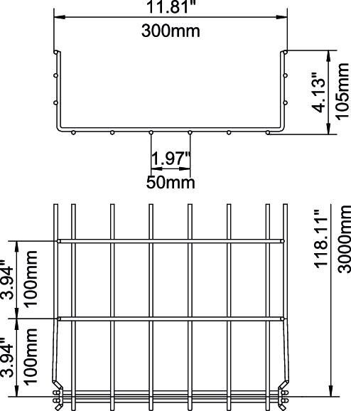 Per la passerella grigliata non sono necessari ulteriori componenti di collegamento, le due estremità vengono semplicemente inserite una nell'altra. La dimensione delle maglie è di 50 x 100 mm.