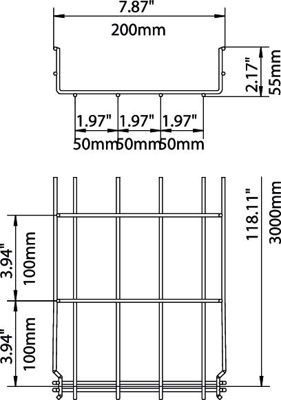 Per la passerella grigliata non sono necessari ulteriori componenti di collegamento, le due estremità vengono semplicemente inserite una nell'altra. La larghezza della maglia è di 50 x 100 mm (eccezione GRM 55/50 = 20 x 100 mm).