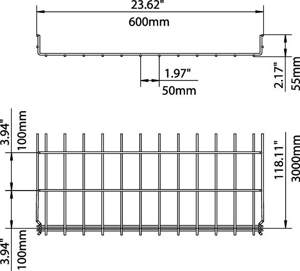 Per la passerella grigliata non sono necessari ulteriori componenti di collegamento, le due estremità vengono semplicemente inserite una nell'altra. La larghezza della maglia è di 50 x 100 mm (eccezione GRM 55/50 = 20 x 100 mm).