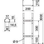 Descrizione del prodottoPasserella con longherone forato, con bordo di altezza pari a 110 mm, pioli del profilato a C rivettati e aperti verso l'alto.
