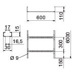 Descrizione del prodottoPasserella con longherone forato, con bordo di altezza pari a 110 mm, pioli del profilato a C rivettati e aperti verso l'alto.