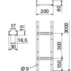 Descrizione del prodottoPasserella con longherone forato, con bordo di altezza pari a 60 mm, pioli del profilato a C rivettati e aperti verso l'alto (versione VS).