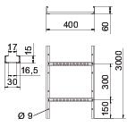 Descrizione del prodottoPasserella con longherone forato, con bordo di altezza pari a 60 mm, pioli del profilato a C rivettati e aperti verso l'alto (versione VS).