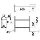 Descrizione del prodottoPasserella con longherone forato, con bordo di altezza pari a 60 mm, pioli del profilato a C rivettati e aperti verso l'alto (versione VS).