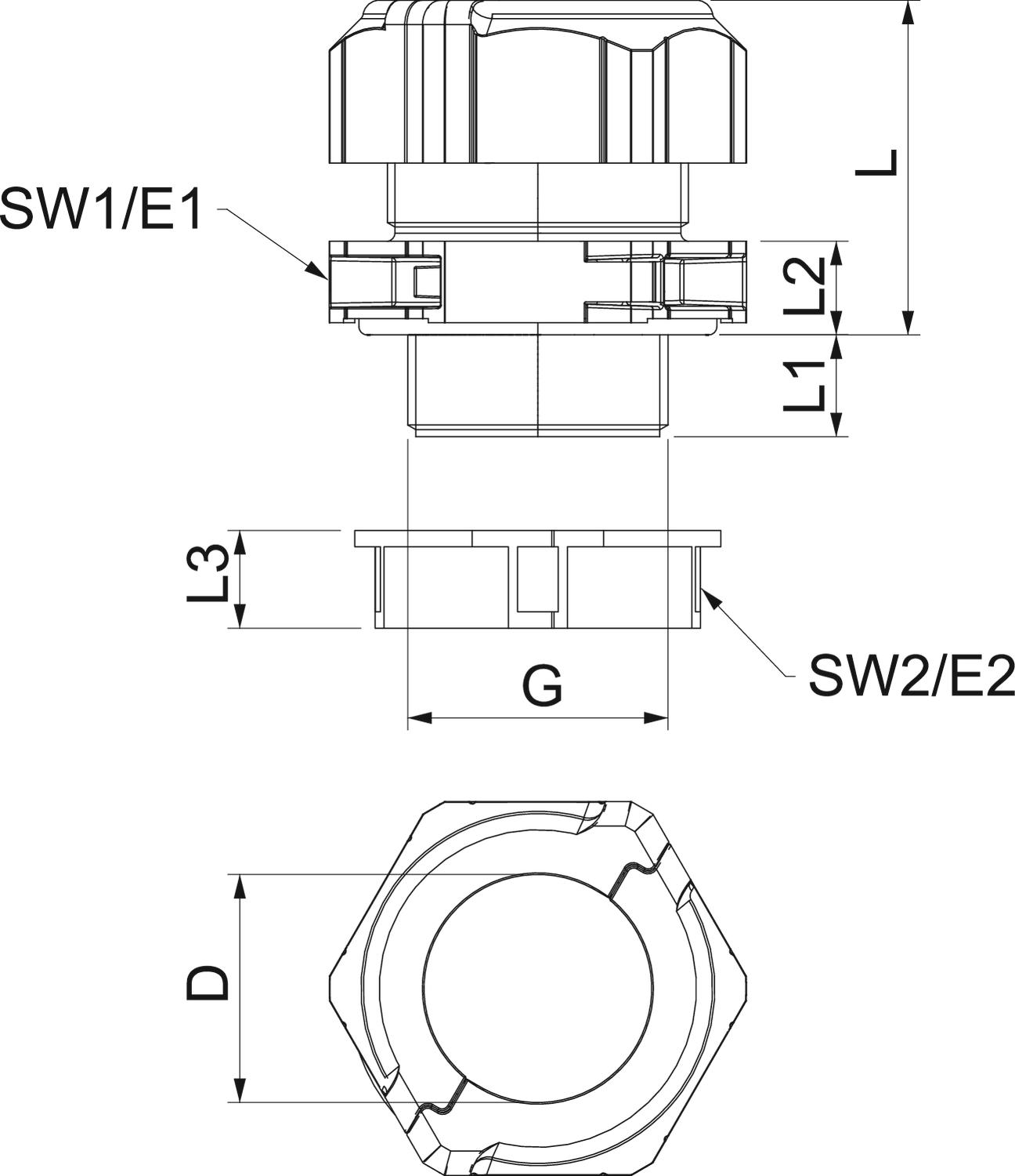 Altezza 53,5 mm antiesplosione no Apertura di chiave 46 Apertura di chiave 1 46 mm Apertura di chiave 2 40 mm Collegamento a vite divisibile sì Colore grigio chiaro Con controdado sì Coppia di serraggio instabile 8 Nm Dimensione e 51,5 mm Dimensione D 28 mm Dimensione E1 (mm) 51,5 mm Dimensione E2 45 mm Dimensione G M32x1,5 mm Dimensione L 41 mm Dimensione L max. 41 mm Dimensione L min. 32 mm Dimensione L1 14 mm Dimensione L2 10 mm Dimensione L3 12 mm Dimensionee M32 Dimensioni nominali filettatura 32 Filettatura M32 x 1,5 Grado di protezione IP67 Guarnizione multiforo no Impronta CO2 (GWP) dalla culla al cancello 0,3431 kg CO2e / 1 Pezzo Larghezza 51,5 mm Lughezza. 46 mm Lunghezza filettatura 14 mm Materiale Policarbonato Passo filettatura 1,5 mm Per zona esplosiva NULL per zone con gas esplosivi senza per zone con polveri esplosive NULL Possibilità di scarico di trazione no Pressacavo per cavo piatto no Priva di alogeni sì Protezione antiriflesso no Range di temperatura di esercizio max 80 °C Range di temperatura di esercizio min. -20 °C Resistente agli urti sì Rinforzato con fibre di vetro no tagliafiamma secondo VDE 0471/DIN 695 parte 2-1, temperatura di prova 650 °C Tipo di guarnizione Anello di tenuta Tipo filettatura metrica Versione dritto - Tutti i tipi
