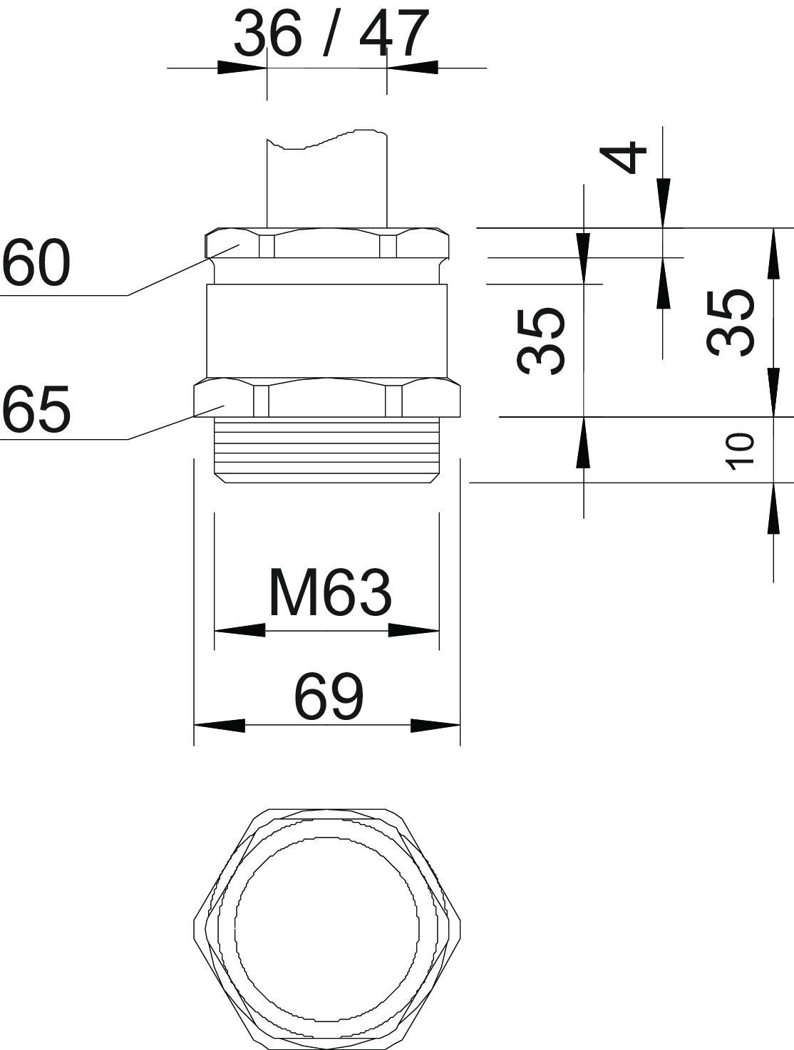 antiesplosione no Apertura di chiave 1 65 mm Apertura di chiave 2 60 mm Area di tenuta D max 47 mm Area di tenuta D min. 36 mm Con controdado no Dimensione e 69 mm Dimensione L 35 mm Dimensione L max. 35 mm Dimensione L1 10 mm Dimensione L2 35 mm Dimensione L3 4 mm Dimensionee M63 Filettatura M63 x 1,5 Grado di protezione IP65 Guarnizione multiforo no Impronta CO2 (GWP) dalla culla al cancello 0,9694 kg CO2e / 1 Pezzo Lunghezza filettatura 10 mm Materiale Ottone Per zona esplosiva NULL Possibilità di scarico di trazione no Pressacavo per cavo piatto no Priva di alogeni no Protezione antiriflesso no Resistente agli urti no Rinforzato con fibre di vetro no Superficie nichelato Tipo di guarnizione Anello di tenuta tagliabile Tipo filettatura metrica - Tutti i tipi