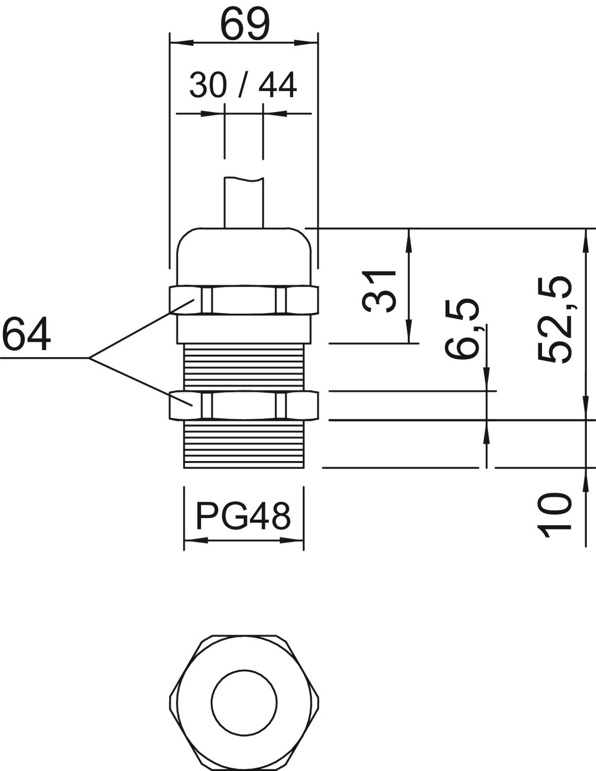 Grado di protezione IP68 con 5 bar/1 ora, testato secondo DIN EN 62444. Lunghezza filettatura di raccordo "normale", in conformità a DIN 46320.