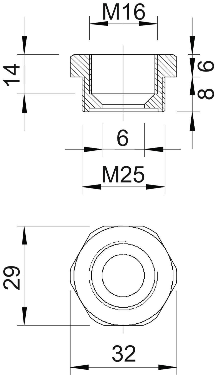antiesplosione no Apertura di chiave 29 Colore grigio chiaro; RAL 7035 Dimensione e 32 mm Dimensione L 14 mm Dimensione L1 8 mm Dimensione L2 6 mm Dimensione L3 14 mm Dimensionee M25-M16 Impronta CO2 (GWP) dalla culla al cancello 0,0272 kg CO2e / 1 Pezzo Lunghezza filettatura 8 mm Materiale Poliammide Misura filettatura metrica esterna 25 Misura filettatura metrica interna 16 nichelato no Priva di alogeni sì Tipo filettatura esterna metrica Tipo filettatura interna metrica - Tutti i tipi