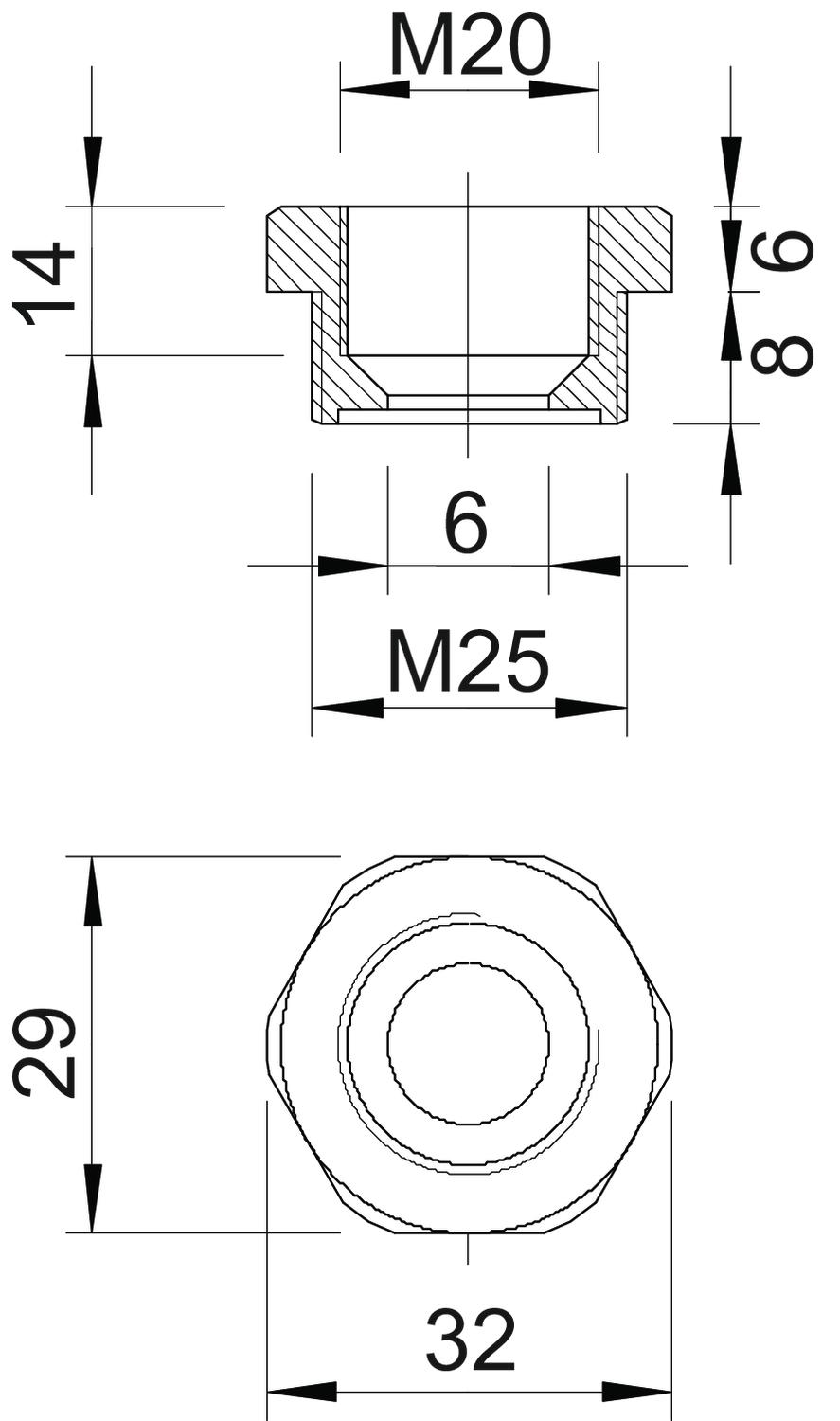 antiesplosione no Apertura di chiave 29 Colore grigio chiaro; RAL 7035 Dimensione e 32 mm Dimensione L 14 mm Dimensione L1 8 mm Dimensione L2 6 mm Dimensione L3 14 mm Dimensionee M25-M20 Impronta CO2 (GWP) dalla culla al cancello 0,0197 kg CO2e / 1 Pezzo Lunghezza filettatura 8 mm Materiale Poliammide Misura filettatura metrica esterna 25 Misura filettatura metrica interna 20 nichelato no Priva di alogeni sì Tipo filettatura esterna metrica Tipo filettatura interna metrica - Tutti i tipi
