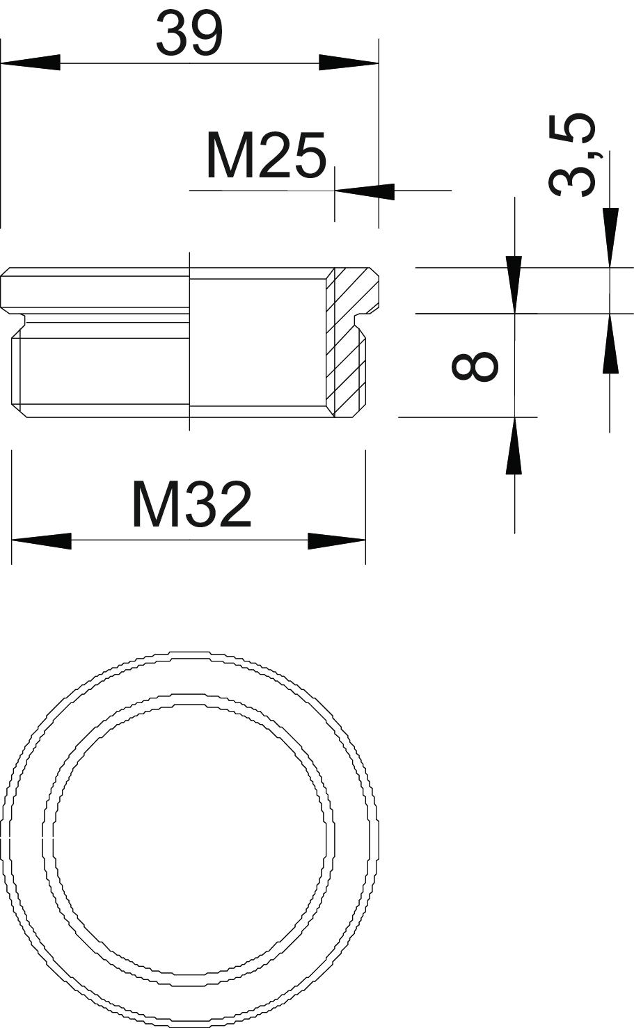 antiesplosione no Dimensione D 39 mm Dimensione L1 8 mm Dimensione L2 3,5 mm Dimensionee M32-M25 Impronta CO2 (GWP) dalla culla al cancello 0,1085 kg CO2e / 1 Pezzo Lunghezza filettatura 8 mm Materiale Ottone Misura filettatura metrica esterna 32 Misura filettatura metrica interna 25 nichelato sì Superficie nichelato Tipo filettatura esterna metrica Tipo filettatura interna metrica - Tutti i tipi