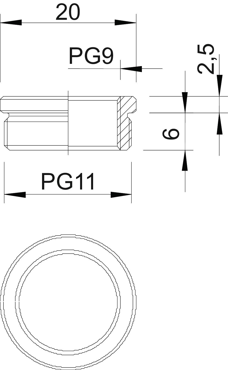 Descrizione del prodottoRiduzione (Parte H) secondo DIN 46320, con filettatura PG secondo DIN 40430, per il passaggio da un foro filettato PG ad un pressacavo di dimensioni inferiori.