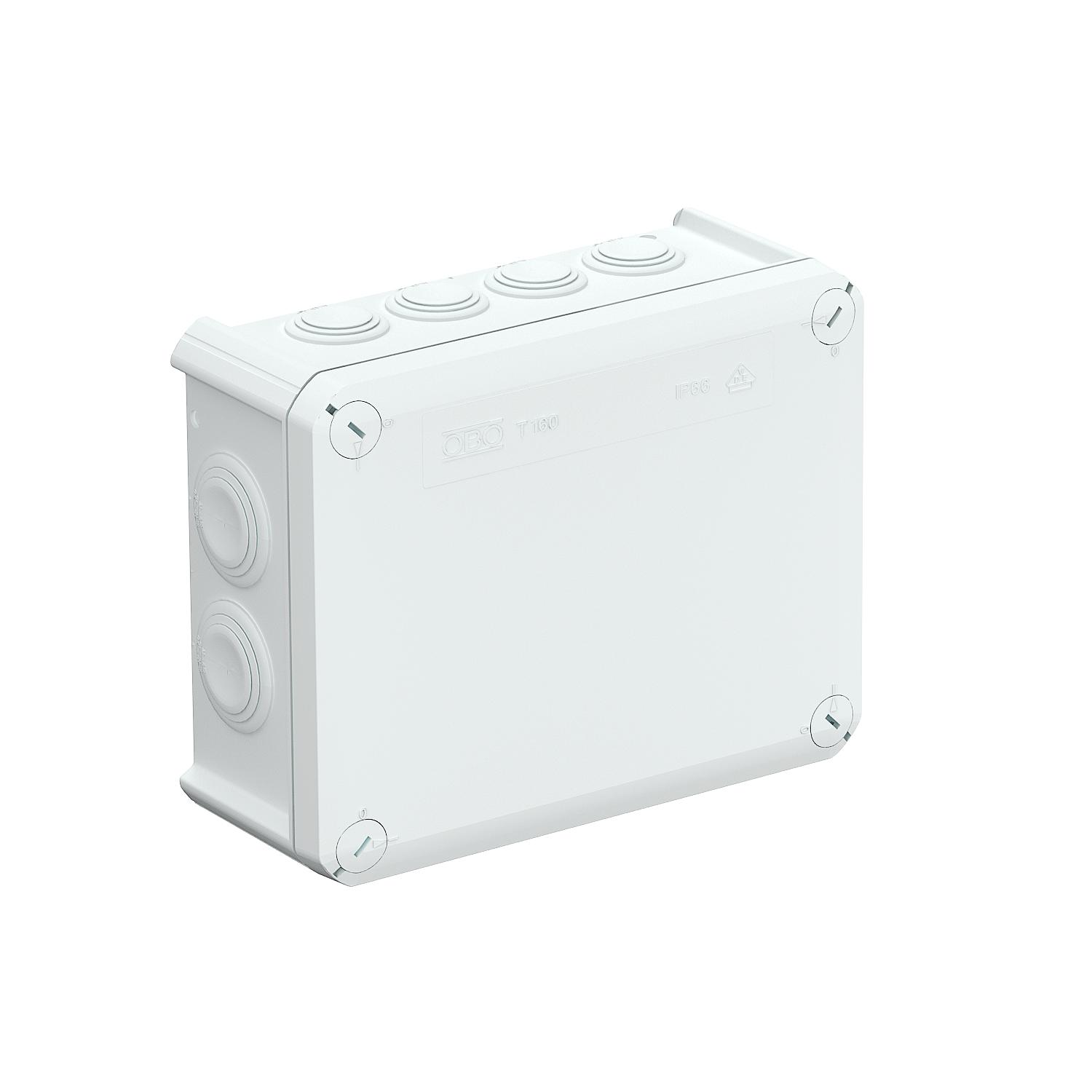 Descrizione del prodottoScatola di derivazione per il collegamento di cavi e linee in ambienti interni e ambienti esterni protetti. Forma rettangolare con tenute a innesto sui lati e inserti di deviazione nel fondo. Adatta per il montaggio su pareti e soffitti e il montaggio su piastre di montaggio. Con la possibilità di fissaggio interno e montaggio tramite cupole angolari. Coperchio con chiusura rapida, piombabile. Realizzato con materiali privi di alogeni e resistenti ai raggi UV.