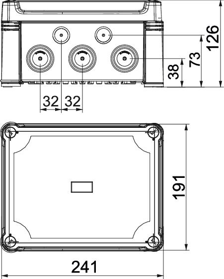 Descrizione del prodottoScatola di derivazione per il collegamento di cavi e linee in ambienti interni e ambienti esterni. Forma rettangolare con inserti di deviazione. Adatta per il montaggio su pareti e soffitti con la possibilità di fissaggio esterno e interno o il montaggio su sezioni angolari. Particolarmente resistente agli urti con IK09. Coperchio con chiusura rapida, piombabile. Realizzato con materiali privi di alogeni e resistenti ai raggi UV. Scatola di derivazione a norma DIN EN 60670. Ignifugo secondo DIN EN 60695-2-11, temperatura di prova 650 °C. Resistenza all'impatto IK09 a norma DIN EN 50102. Grado di protezione IP 67 a norma DIN EN 60529.
