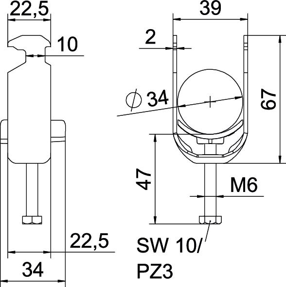 Aggiunta materiale Acciaio Aggiunta superficie zincato a caldo Altezza 67 mm Capacità D max 34 mm Capacità D min. 28 mm Con controcoppa no Con coppa in plastica sì Dimensione A 22,5 mm Dimensione B 39 mm Dimensione C 34 mm Dimensione G (mm) M6 Dimensione H 67 mm Dimensione L 47 mm Dimensione t 2 mm Dimensionee 28-34mm Dimensioni asola 10 mm Filettatura M6 Impronta CO2 (GWP) dalla culla al cancello 0,1493 kg CO2e / 1 Pezzo Larghezza 39 mm Lughezza. 22,5 mm Lunghezza esterna 34 mm Materiale Acciaio Materiale della coppa Plastica Max Coppia di serraggio 3 Nm Numero dei cavi/tubi 1 per diametro tubo max 34 mm per diametro tubo min. 28 mm per profilato portacavi con apertura asola (con intervallo) max 17 mm per profilato portacavi con apertura asola (con intervallo) min. 16 mm Priva di alogeni sì Qualità del materiale della coppa Polipropilene Spessore lamiera 2 mm Superficie zincato a caldo per immersione Tipo di montaggio Profilati - Tutti i tipi
