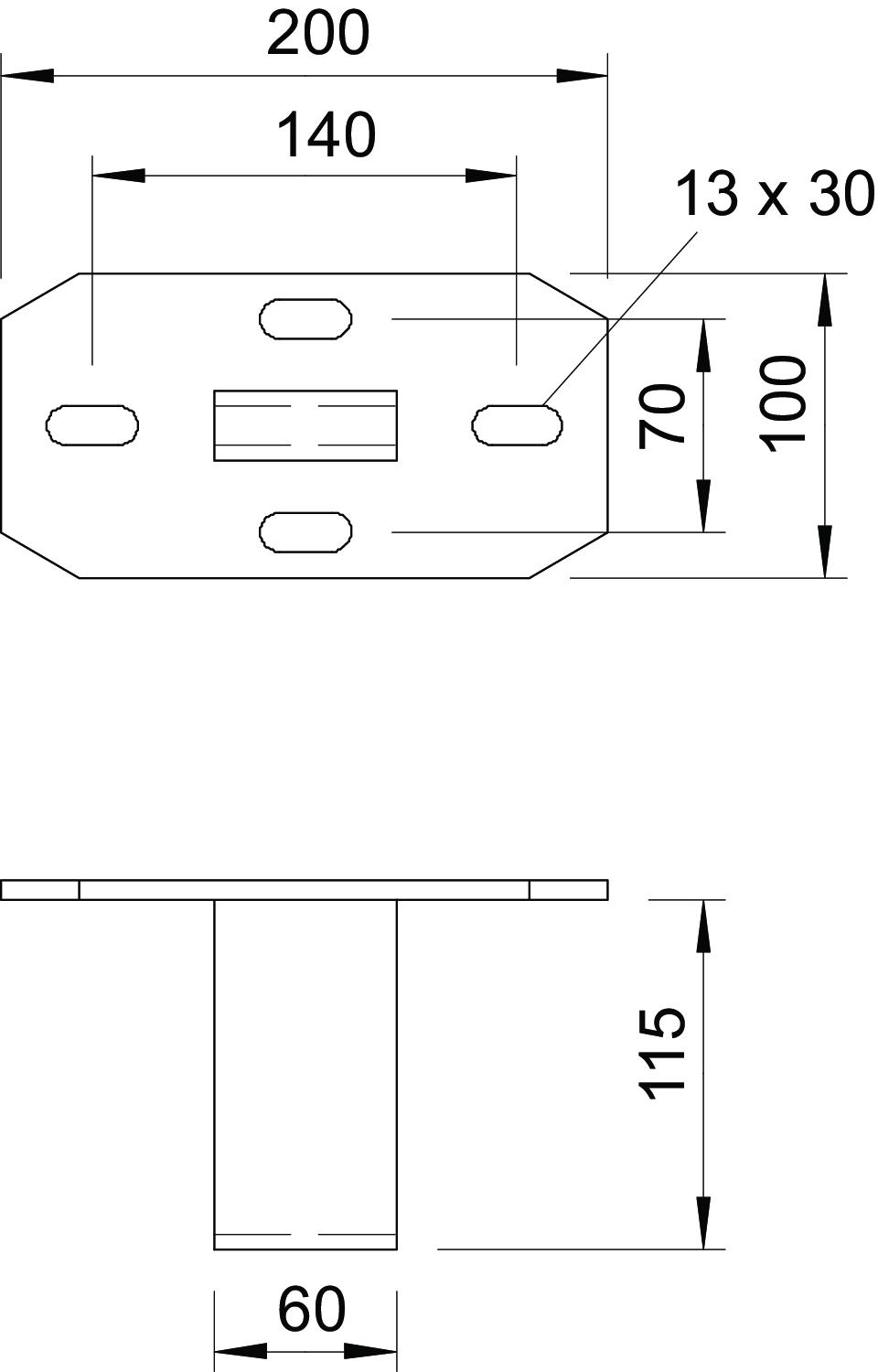Descrizione del prodottoSupporto a soffitto leggero per il montaggio su profilato US 7.