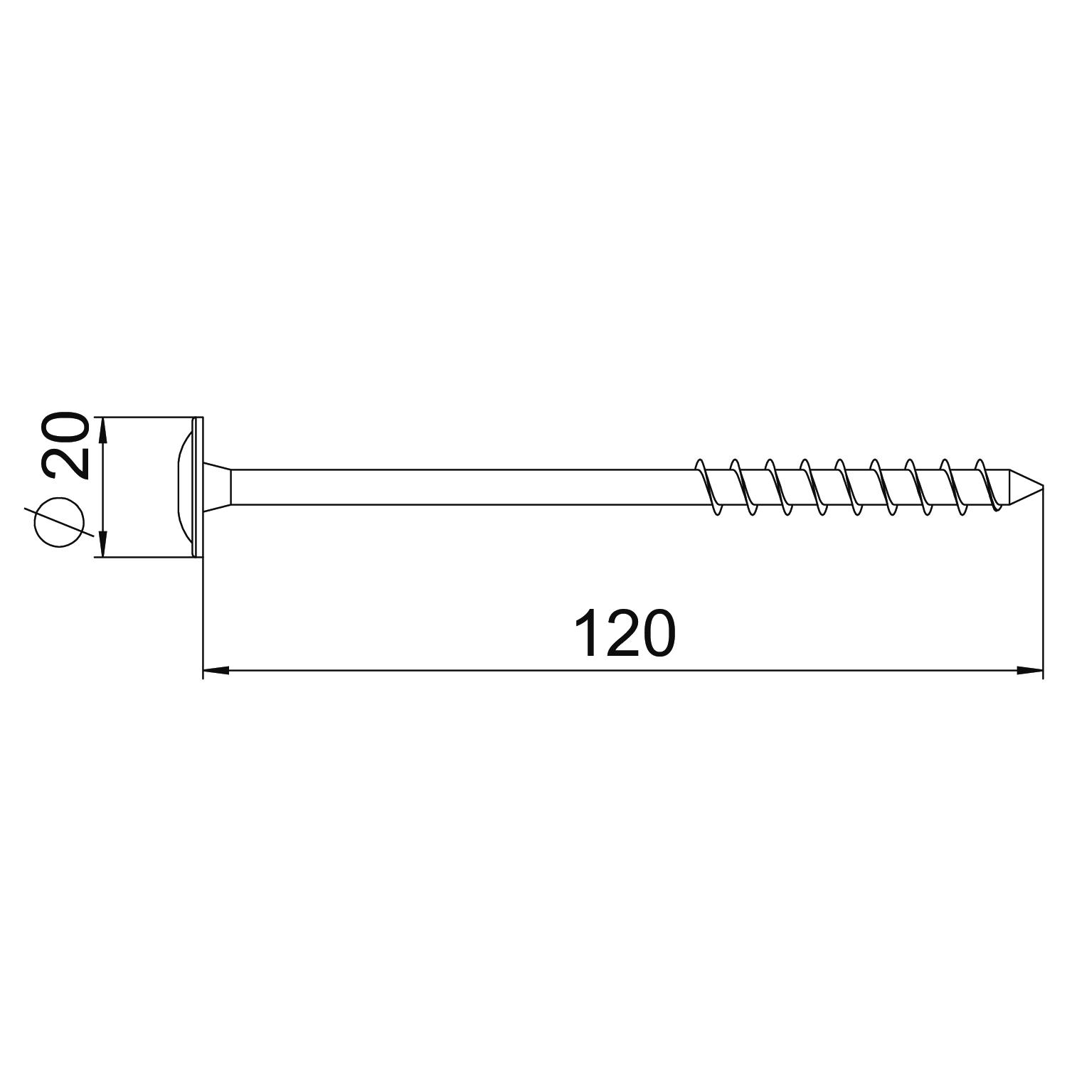 A doppio passo no Colore acciaio inox Diametro 20 mm Diametro gambo 5,2 mm Diametro testa 20 mm Dimensione D 8 mm Dimensione L 123,4 mm Dimensionee 8x120 Forma della testa Testa piatta Lughezza. 120 mm Materiale Acciaio INOX 1.4301 Sistema a vite Torx - Tutti i tipi