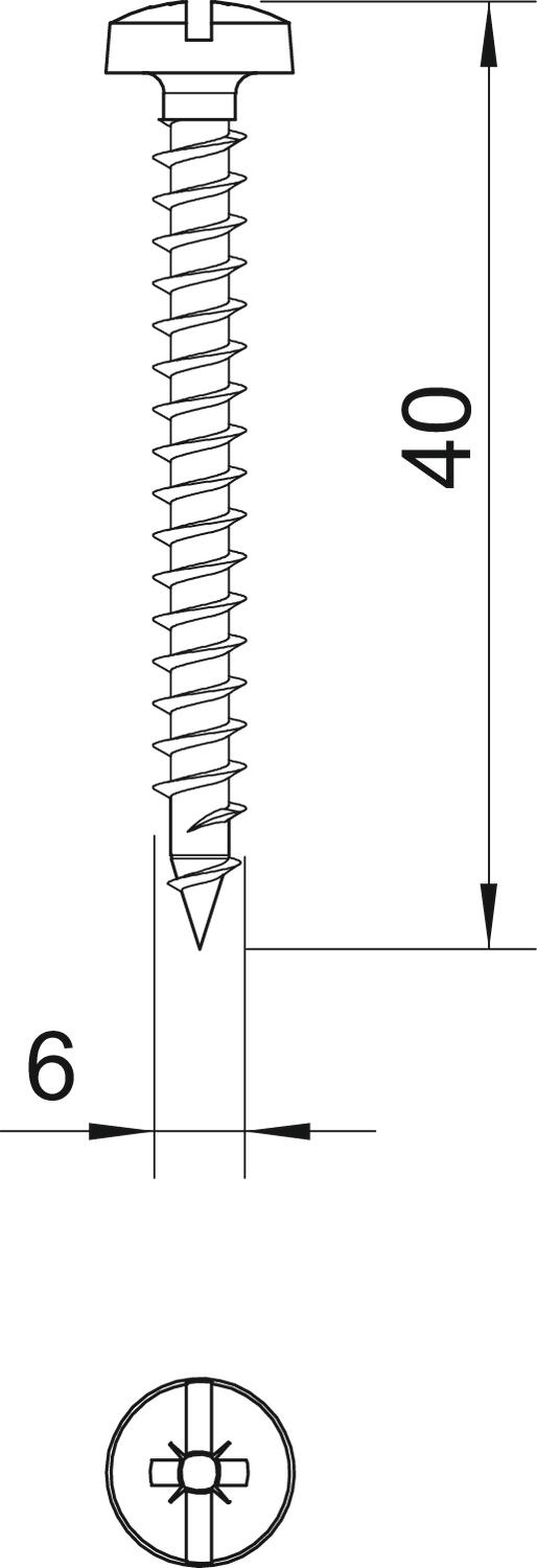 A doppio passo sì Diametro testa 12 mm Dimensione D 6 mm Dimensione L 40 mm Dimensionee 6x40mm Forma della testa NULL Indurito sì Lughezza. 40 mm Materiale Acciaio Sistema a vite Scanalatura combinata Spessore 6 mm Superficie zincato galvanicamente - Tutti i tipi