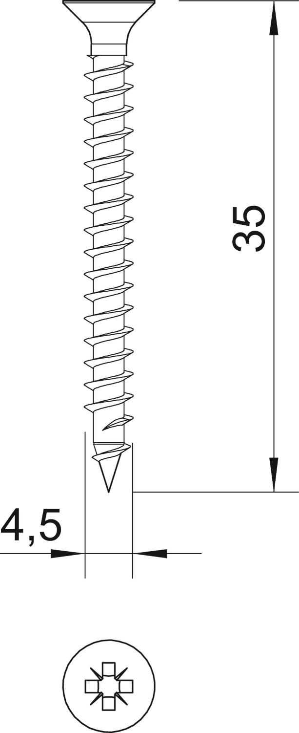 Diametro testa 8,3 mm Dimensione D 4,5 mm Dimensione L 35 mm Dimensionee 4,5x35mm Forma della testa Bulloni filettati interni CD Indurito sì Lughezza. 35 mm Materiale Acciaio Sistema a vite Pozidrive PZ Superficie zincato galvanicamente - Tutti i tipi