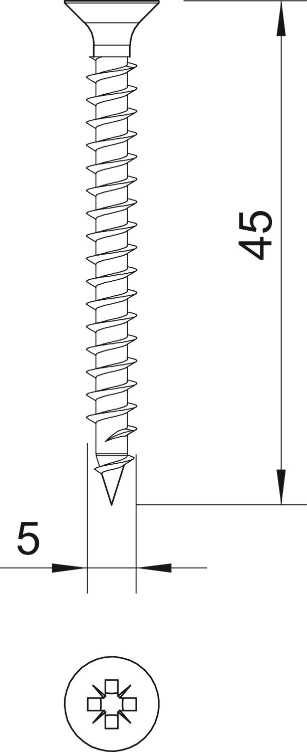 Diametro testa 9,2 mm Dimensione D 5 mm Dimensione L 45 mm Dimensionee 5x45mm Forma della testa Bulloni filettati interni CD Indurito sì Lughezza. 45 mm Materiale Acciaio Sistema a vite Pozidrive PZ Superficie zincato galvanicamente - Tutti i tipi