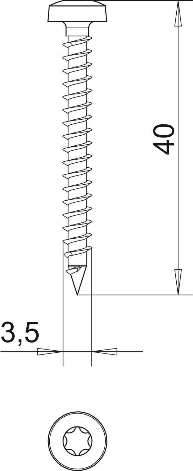 A doppio passo sì Diametro testa 6,5 mm Dimensione D 3,5 mm Dimensione L 40 mm Dimensionee 3,5x40mm Forma della testa NULL Indurito sì Lughezza. 40 mm Materiale Acciaio Sistema a vite Torx Spessore 3,5 mm Superficie zincato galvanicamente - Tutti i tipi
