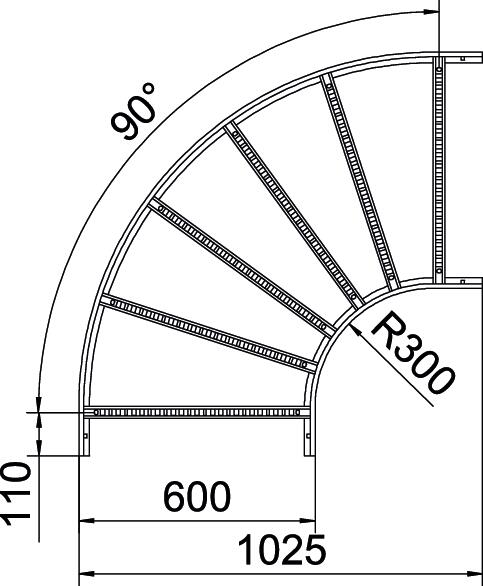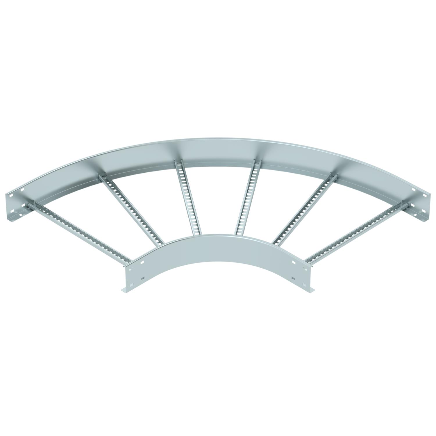 ProduktbeschreibungBogen 90° horizontal mit geschweißter Sprosse für alle Kabelleitertypen mit der Seitenhöhe 110 mm.