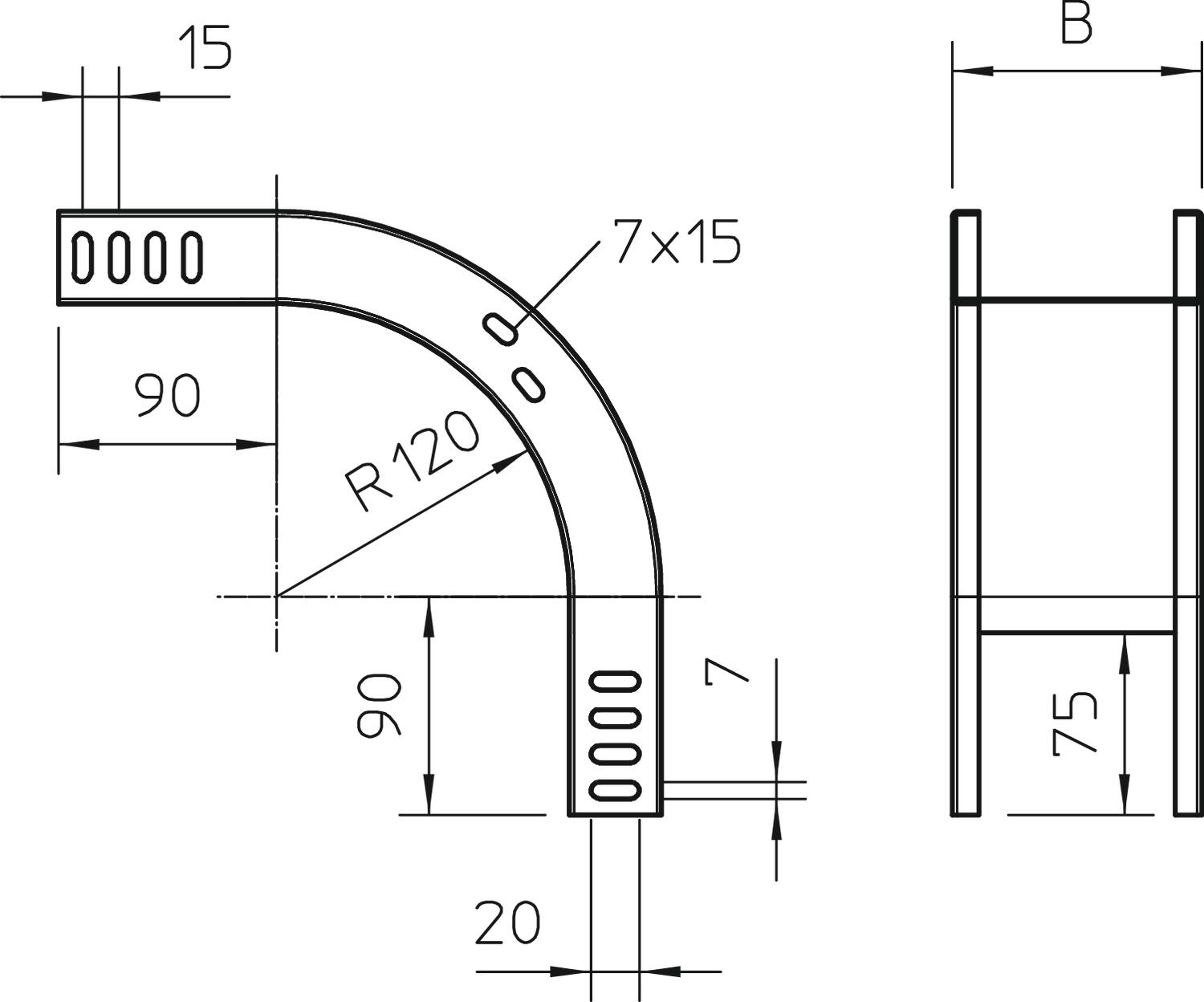 ProduktbeschreibungVertikalbogen 90° in fallender Ausführung für alle Kabelrinnentypen mit der Seitenhöhe 35 mm.