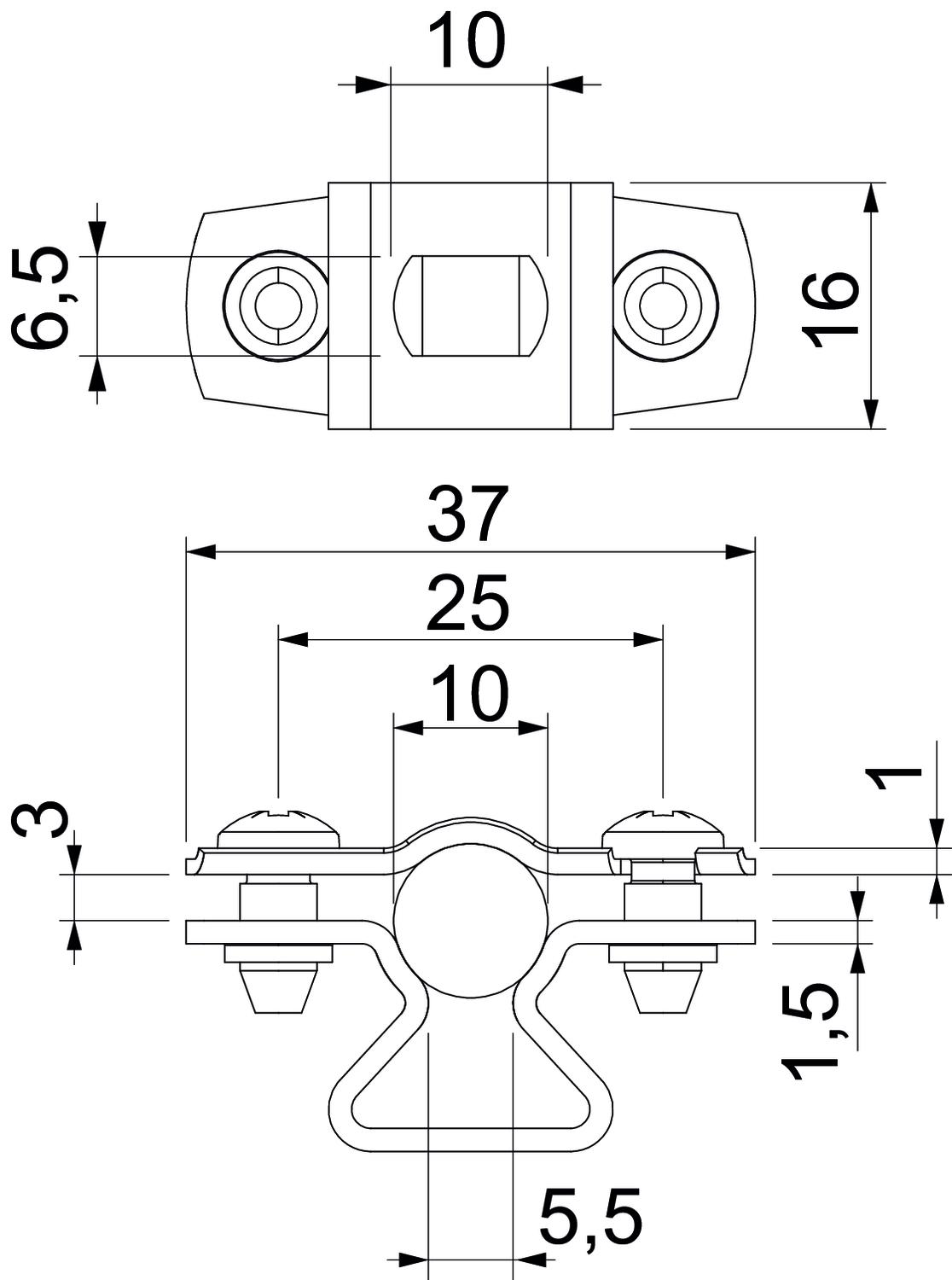 ProduktbeschreibungAbstandschelle zur Montage von Rohren und Kabeln an Wand, Decke und Boden. Mit selbstsicherndem Oberteil. Befestigung über Langloch.