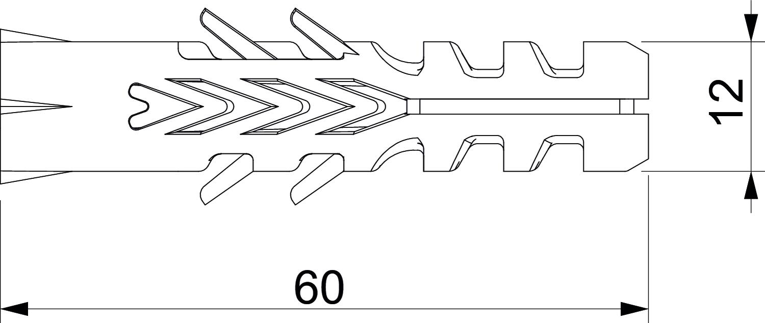 Ausführung Universaldübel Dimension 12x60 Durchmesser 12 mm Farbe lichtgrau Geeignet für Befestigung mit Kabelbinder nein Geeignet für Sechskant-Holzschraube ja Holzschrauben 8-10 Länge 60 mm Maß D 12 mm Maß L 60 mm Mit Schrauben nein Werkstoff Polyamid - Alle Typen