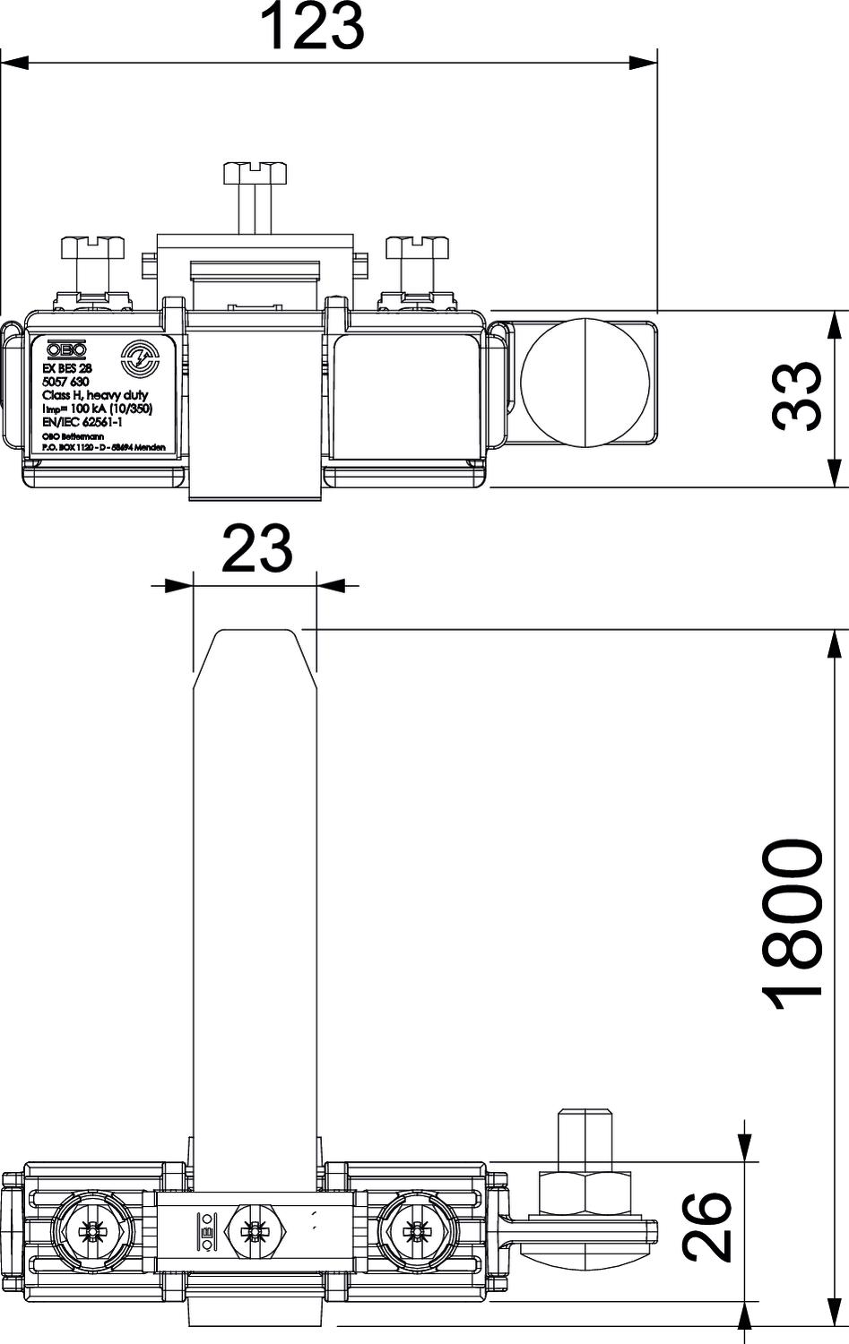 • Blitzstromtragfähigkeitsklasse H (100 kA) nach VDE 0185-561-1 (IEC/EN 62561-1)