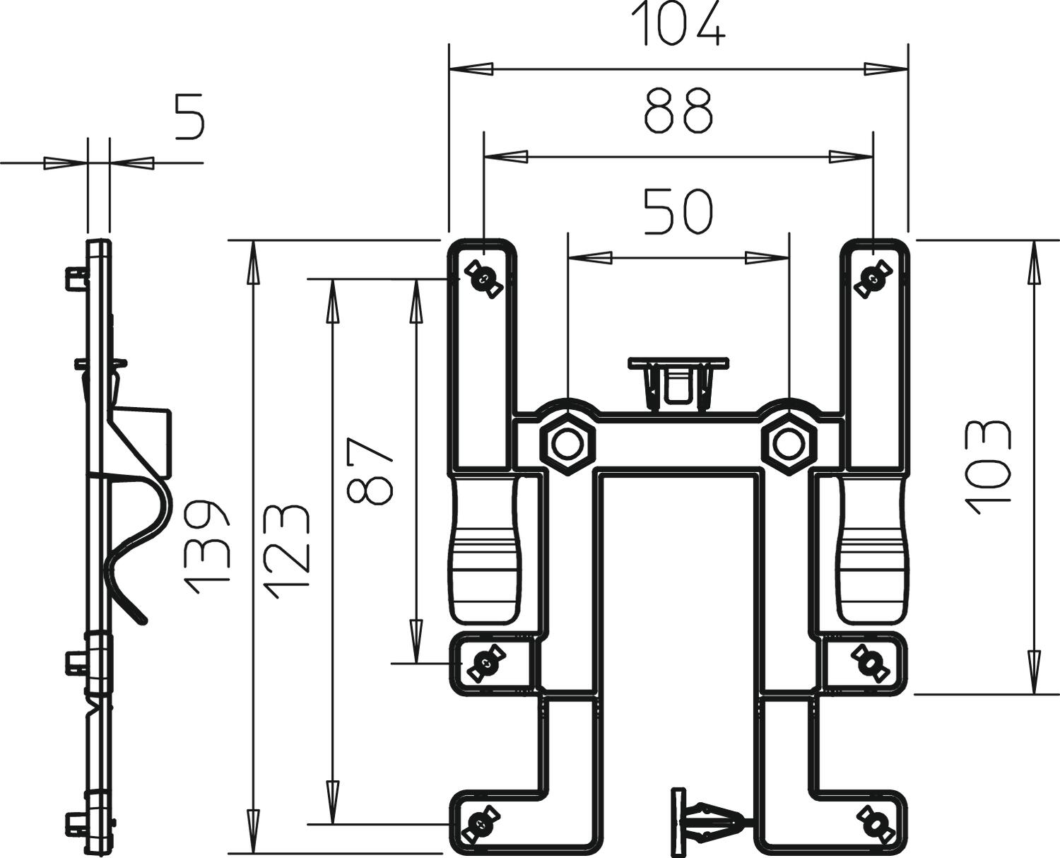 ProduktbeschreibungBefestigungselement für Kabelabzweigkästen (T60 und T100), zum werkzeuglosen Montieren an Kabelrinnen. Kabelabzweigkästen beidseitig horizontal oder vertikal montierbar.
