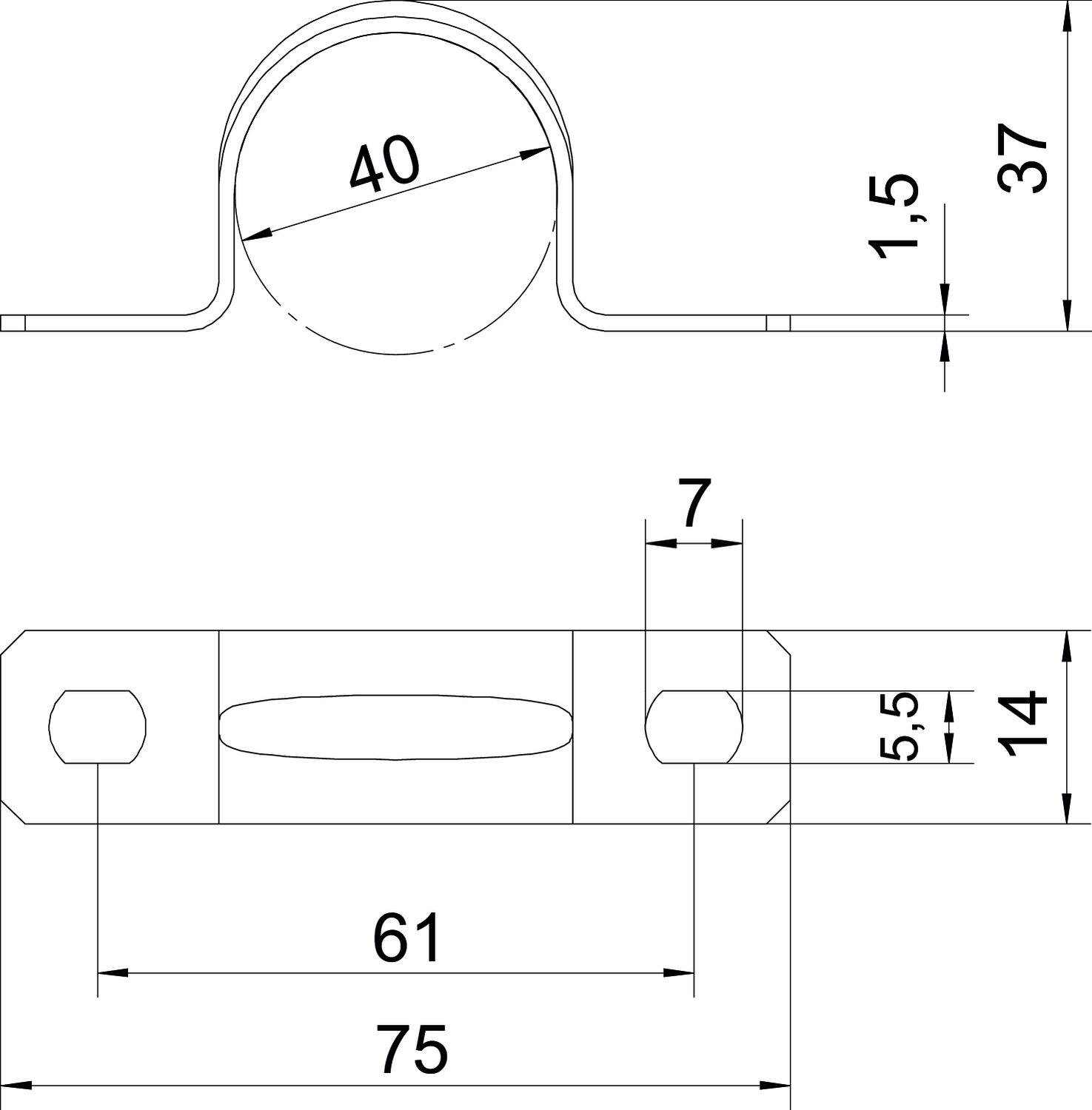 Abstand zur Wand nein Anzahl der Kabel/Rohre 1 Ausführung zweilappig Befestigungsart Schraubloch Breite 14 mm CO2 Fußabdruck (GWP) Cradle-to-Gate 0,054 kg CO2e / 1 Stück Dimension 40mm für Durchmesser 40 Geeignet im Brandschutzbereich nein Halogenfrei ja Höhe 37 mm Kunststoffummantelt nein Länge 75 mm Lochgröße 5,5 x 7 mm Maß B 61 mm Maß A 75 mm Maß b 14 mm Maß d 5,5 mm Maß D 40 mm Maß e 7 mm Maß H 37 mm Maß t 1,5 mm Materialstärke 1,5 mm Nenndurchmesser 40 mm Oberfläche galvanisch verzinkt UV-beständig ja Werkstoff Stahl - Alle Typen