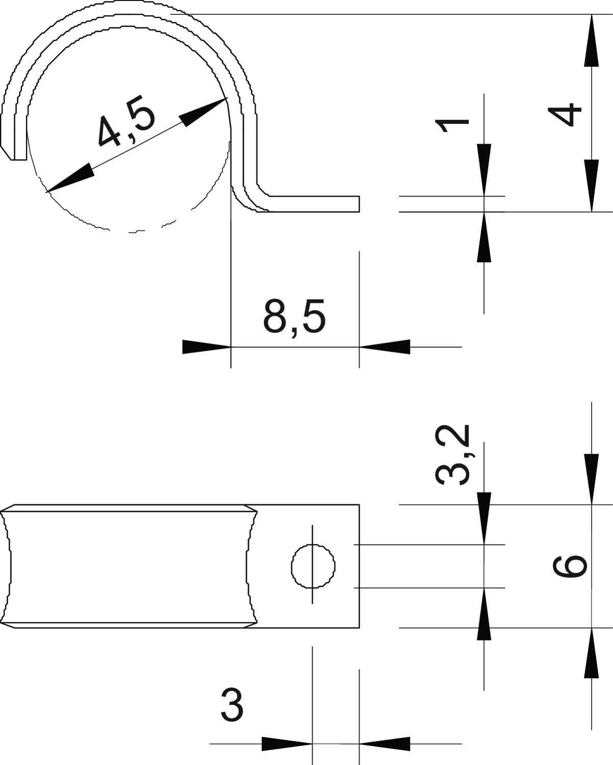 Abstand zur Wand nein Anzahl der Kabel/Rohre 1 Ausführung einlappig Befestigungsart Schraubloch Breite 6 mm CO2 Fußabdruck (GWP) Cradle-to-Gate 0,0017 kg CO2e / 1 Stück Dimension 4,5mm für Durchmesser 4,5 Geeignet im Brandschutzbereich nein Halogenfrei ja Höhe 4 mm Kunststoffummantelt nein Länge 8,5 mm Lochgröße 3,2 mm Maß A 3 mm Maß b 6 mm Maß D 4,5 mm Maß d 3,2 mm Maß H 4 mm Maß L 8,5 mm Maß t 1 mm Materialstärke 1 mm Nenndurchmesser 4,5 mm Oberfläche galvanisch verzinkt, transparent passiviert UV-beständig ja Werkstoff Stahl - Alle Typen