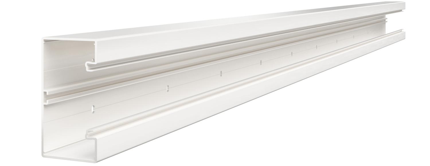 ProduktbeschreibungGKH Geräteeinbaukanal aus halogenfreiem PC/ABS, geeignet zur Montage direkt auf der Wand oder an Wandkonsolen. Die Befestigung erfolgt über die Regellochung im Kanal. Der GKH Geräteeinbaukanal verfügt über ein C-Profil am Boden zur Aufnahme einer Trennwand aus Kunststoff. In den Geräteeinbaudosen der Serie 71GD... können alle Schalterprogramme in Tragring- und Tragbügelbauweise sowie Modul 45-Installationsgeräte installiert werden. Die Systemöffnung beträgt 76,5 mm. Je Kanallänge ist einseitig ein Kupplungspaar vormontiert.