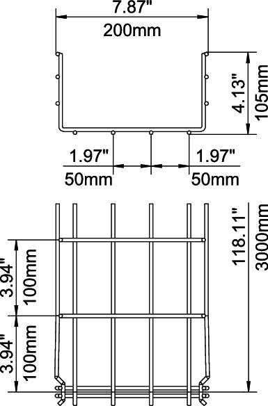 Für die Gitterrinne werden keine zusätzlichen Verbinderbauteile benötigt, sie wird einfach ineinandergesteckt. Die Maschenweite beträgt 50 x 100 mm.