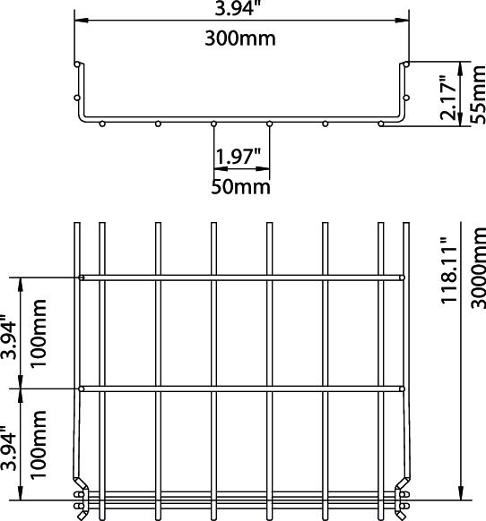 Für die Gitterrinne werden keine zusätzlichen Verbinderbauteile benötigt, sie wird einfach ineinandergesteckt. Die Maschenweite beträgt 50 x 100 mm (Ausnahme GRM 55/50 = 20 x 100 mm).
