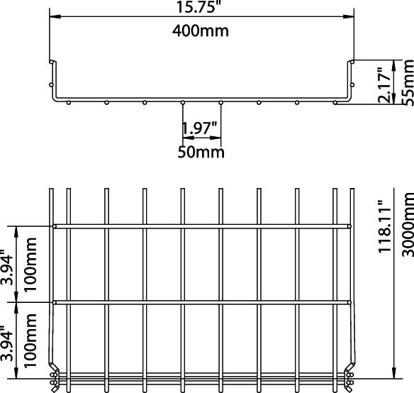 Für die Gitterrinne werden keine zusätzlichen Verbinderbauteile benötigt, sie wird einfach ineinandergesteckt. Die Maschenweite beträgt 50 x 100 mm (Ausnahme GRM 55/50 = 20 x 100 mm).