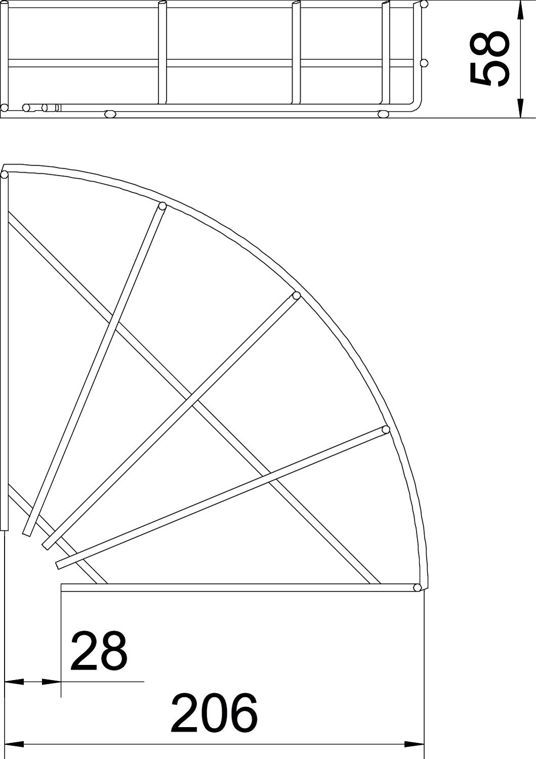 ProduktbeschreibungBogen 90°, horizontal, für Gitterrinnen mit der Seitenhöhe 55 mm.