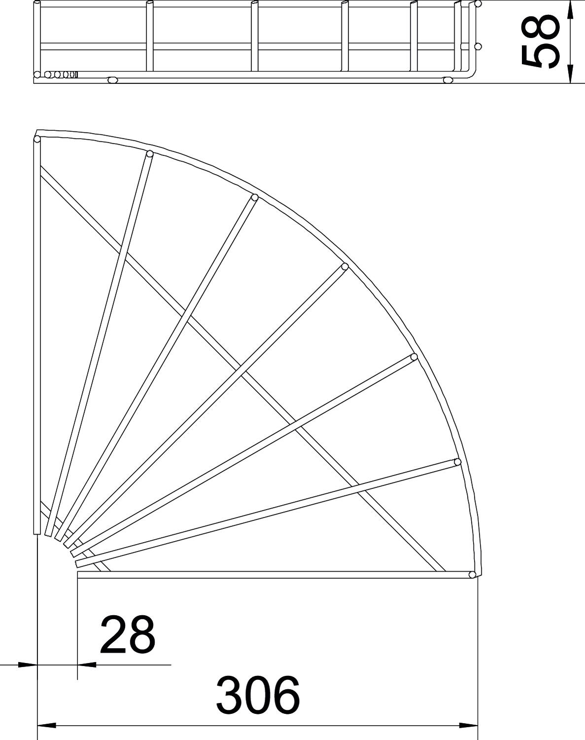 ProduktbeschreibungBogen 90°, horizontal, für Gitterrinnen mit der Seitenhöhe 55 mm.